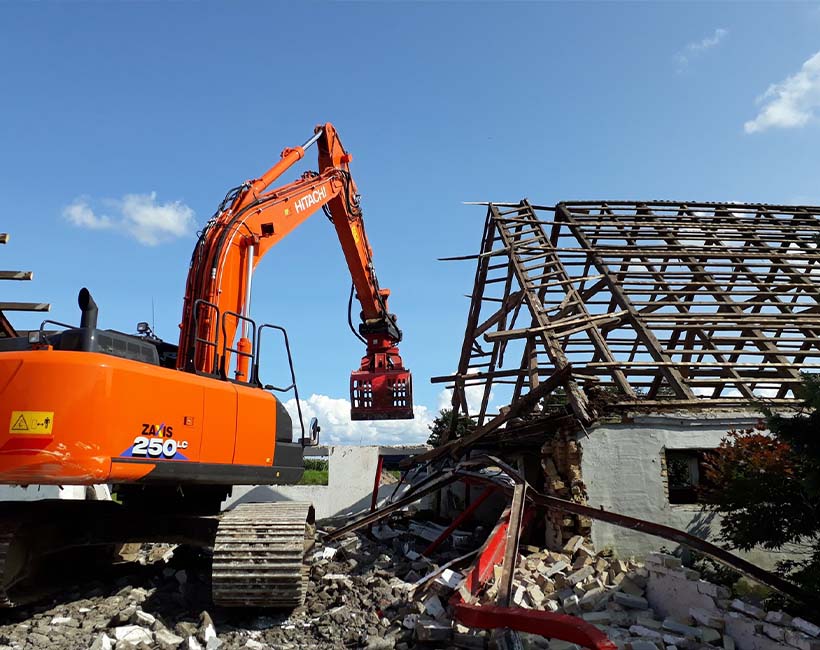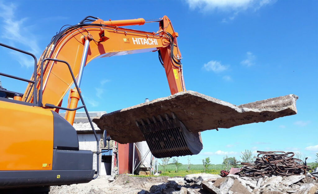 Nedbrydning og bygningsdemontering – totalnedrivning af huse og landbrugsbygninger samt selektiv nedrivning med fokus på genanvendelse.